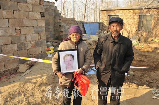 牛福芹和楊福芝站在挖出兒子屍骸的大坑前,抱著兒子的遺像。     2011年,聊城市東阿縣劉集鎮東三合村楊福芝的兒子楊貞祥失蹤了。老兩口苦苦尋找,尋子成了老兩口的心病。五年後,楊貞祥失蹤案破案,楊貞祥系被本村村民董某某和楊福芝的兒媳劉某某殺害。12月5日,犯罪嫌疑人指認埋屍地點,在離楊福芝家50米的地方,兒子的遺骸從2米深的坑裡被挖出,老人痛哭失聲,悲痛不已。